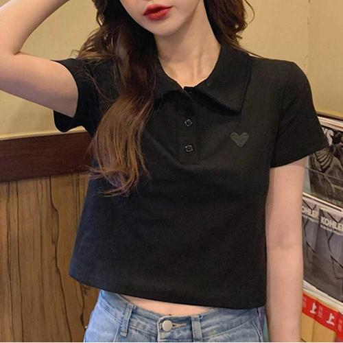 여자 크롭 티셔츠 청바지 코디 하트 카라 넥 여름 WFKOCHV