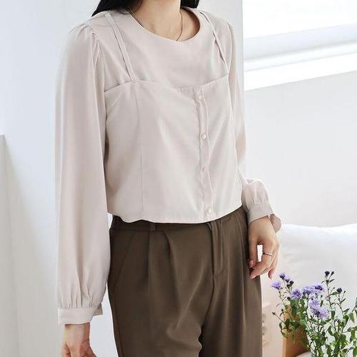 [옷자락]여성 코디 코르셋 페미닌 카라없는 블라우스