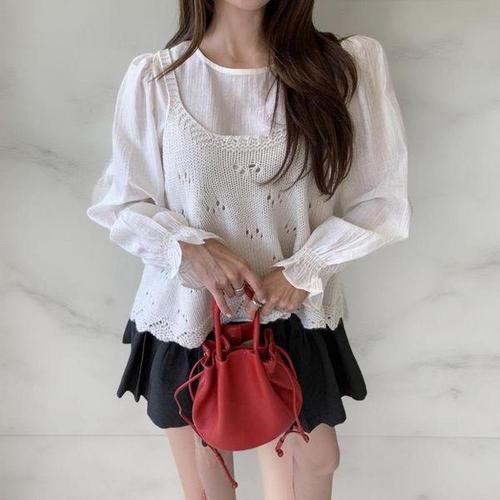 [다잇템]여성 소매 블라우스 스웨터 코르셋 펀칭 세트