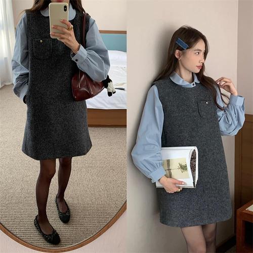 [다잇템]여자 코디 가을겨울 코르셋 포근한 원피스