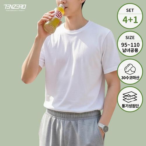 [텐제로]4+1 님녀공용 데일리 코마사 30수 순면 무지 반팔면티셔츠 이너티 땀흡수 속건 TZ26TS15