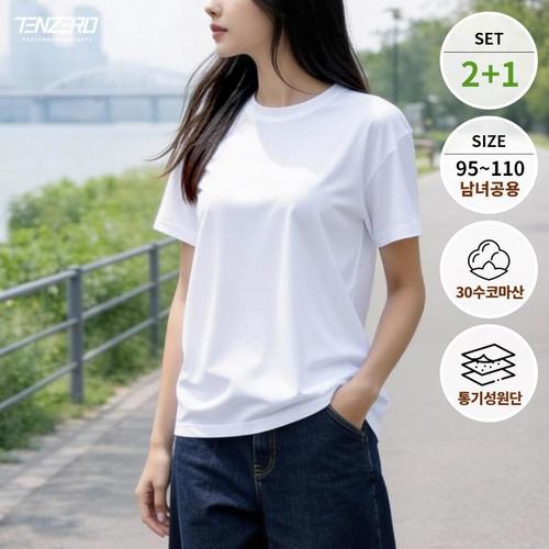 [텐제로]2+1 님녀공용 데일리 코마사 30수 순면 무지 반팔면티셔츠 이너티 땀흡수 속건 TZ26TS13