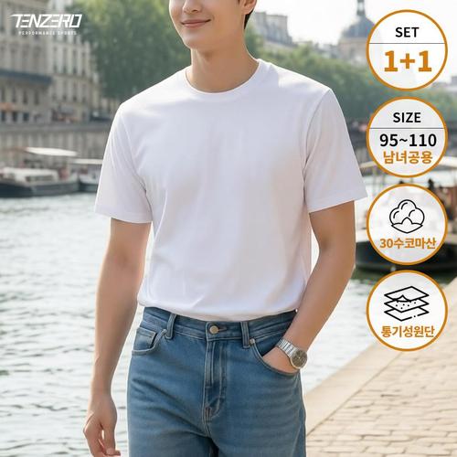 1+1 텐제로 님녀공용 데일리 코마사 30수 순면 무지 반팔면티셔츠 이너티 땀흡수 속건 TZ26TS12