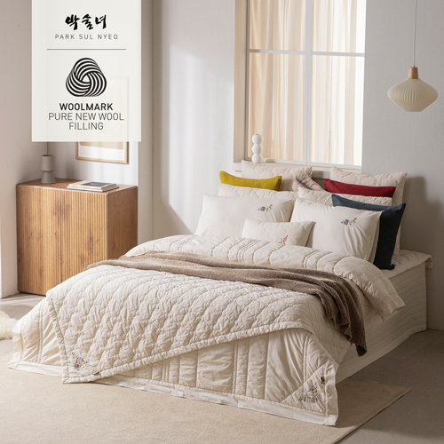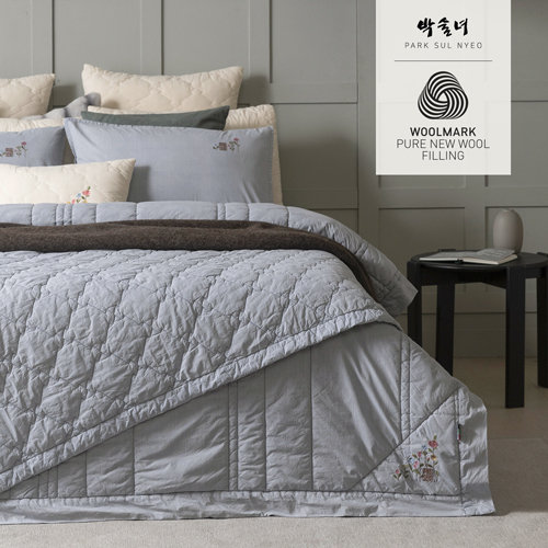 [SK 플라워 워싱 1세트]박술녀 호주산 양모 100% 워싱 누빔이불1장+베개커버1장