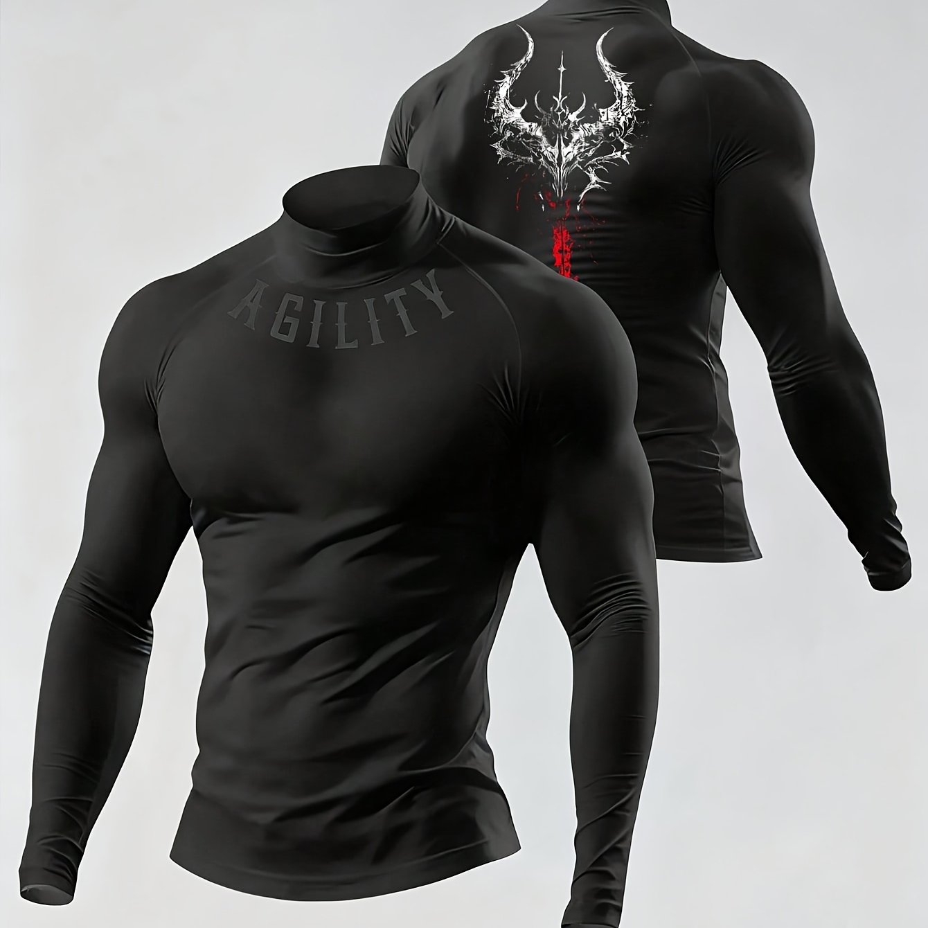 TEMU 남성용 하이 스트레치 긴팔 티셔츠 | 패셔너블한 프린트 디자인, 하이넥, 스키니핏, 러닝, 하이킹 및 데일리 캐주얼 웨어에 적합|요가복|티셔츠