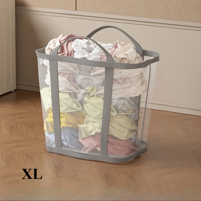 TEMU 다기능 접이식 메쉬 빨래바구니 - 휴대용 수납백, 공간절약형 옷 정리함, 가정용, 여행용, 세탁실용, 직사각형 디자인 대용량, 내구성 강화 스티칭, 빈번한 여행자, 바쁜 전문가를 위한 홈 오거나이저|빨래바구니