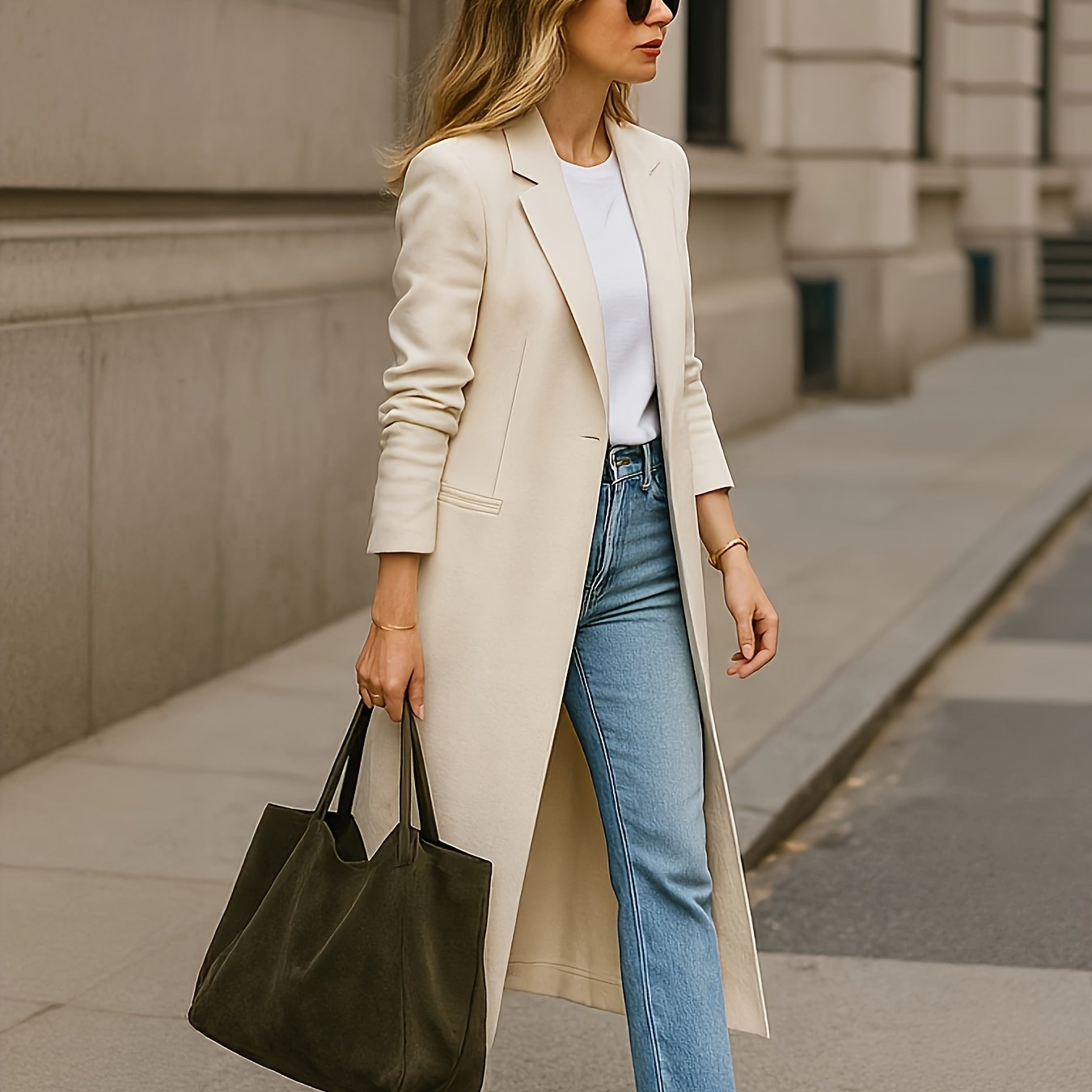 TEMU 여성용 우아한 롱 코트 - 테일러드 H라인 싱글 브레스티드 재킷, 사계절용 롱 슬리브 , 웨딩 및 여행용, 단색 (블랙/네이비/그레이/브라운), 세탁기 사용 가능, 프로페셔널 & 포멀 의상|테무쇼핑|여름원피스
