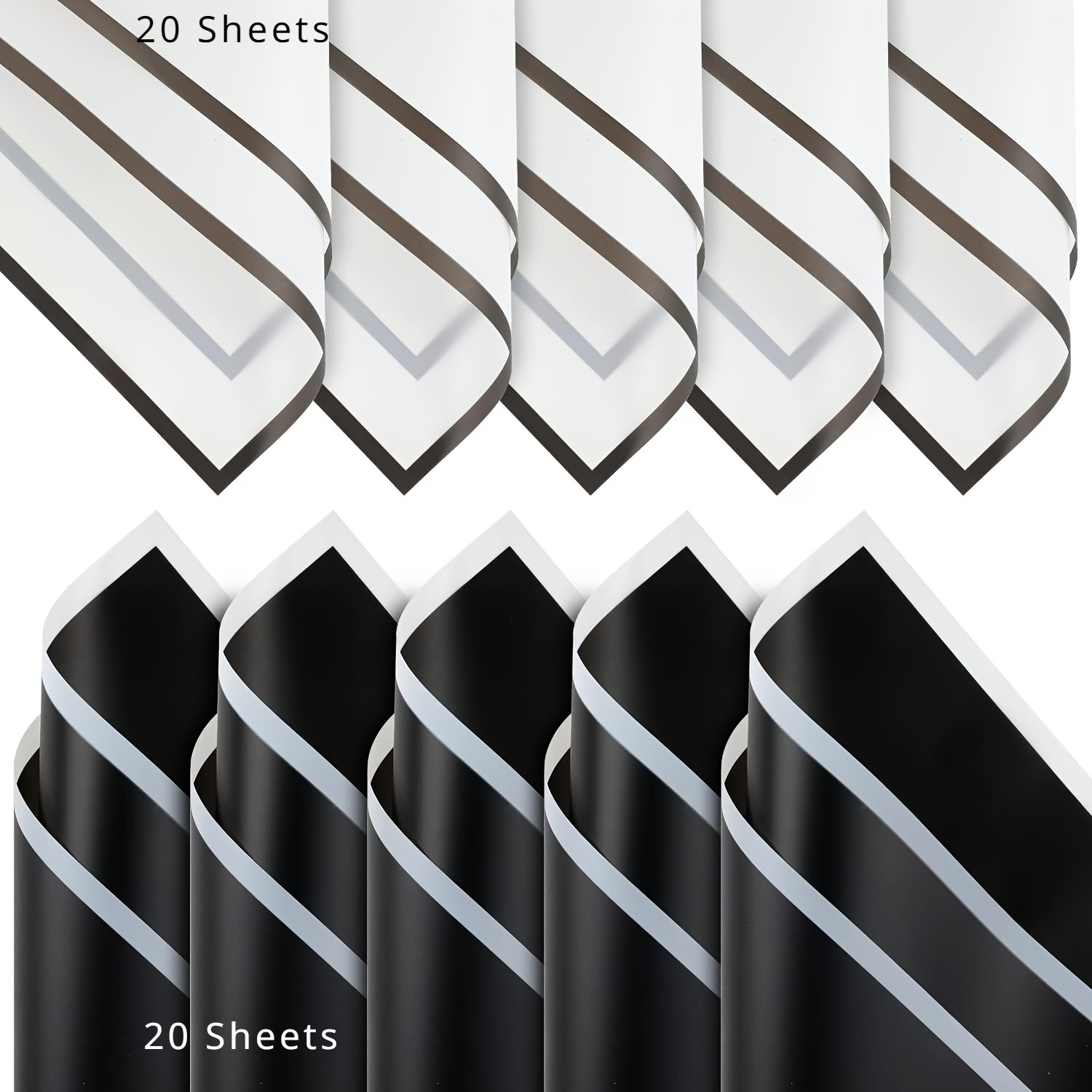 TEMU 새 꽃다발용 흑백 테두리 포장지 40매 (검정 테두리 20매, 흰색 테두리 20매 포함). 꽃꽂이, 선물 포장, 웨딩 포장에 적합하며 모든 행사에 적용 가능