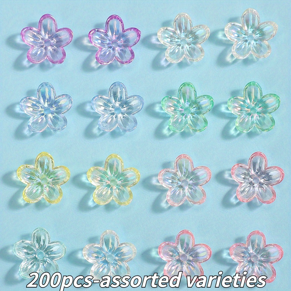 TEMU 200개 12mm 투명 광택 아크릴 구슬, AB 혼합 색상 다섯 꽃잎 꽃 스페이서 비즈, DIY 목걸이 팔찌 귀걸이 열쇠고리 축제 파티 결혼식 장식 및 주얼리 제작용 액세서리
