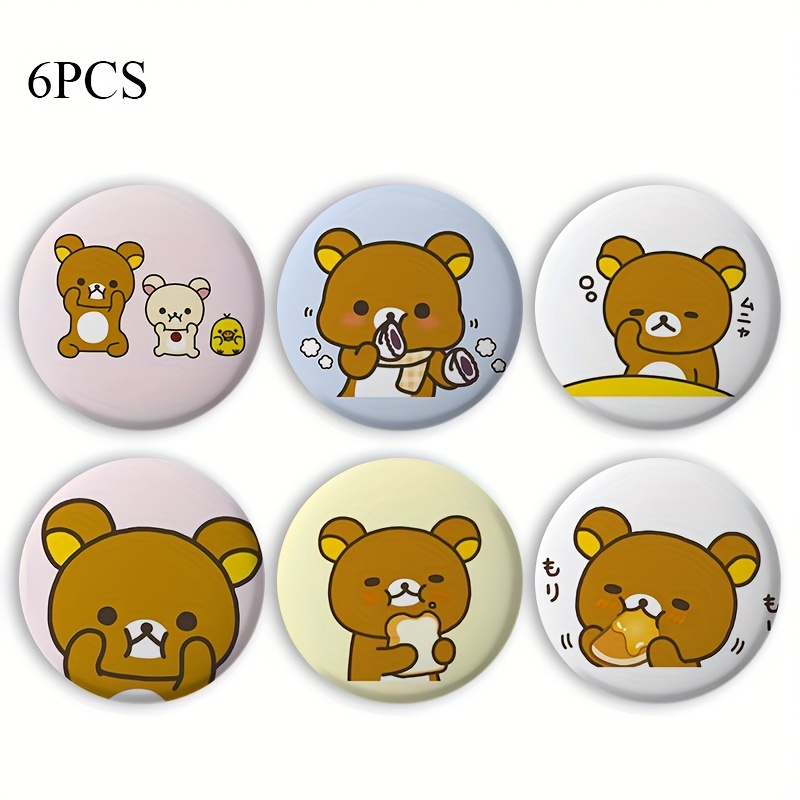 TEMU 6pcs 귀여운 만화 곰 에나멜 핀 - 일본어 텍스트가 있는 우아한 동물 디자인, 청바지, 티셔츠, 백팩 및 모자에 완벽한 - 캐주얼 의상용 독특한 패션 액세서리, 곰 액세서리
