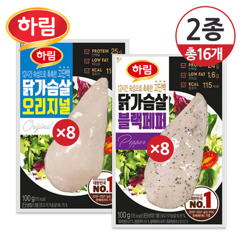 [하림] 닭가슴살 오리지널+블랙페퍼 100g 8개씩 총16개