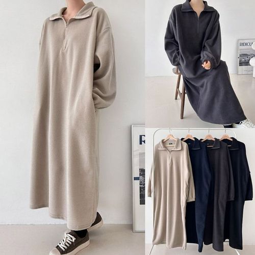 [옷자락] 여자 겨울등원룩 홈웨어 무지 빅사이즈 기모 롱원피스