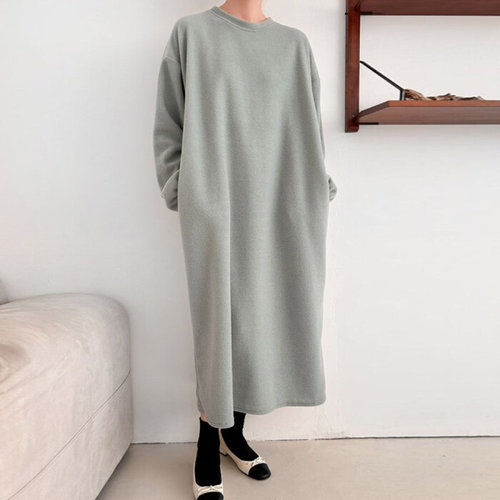 무드인더 라운드넥 오버핏 무지 롱원피스