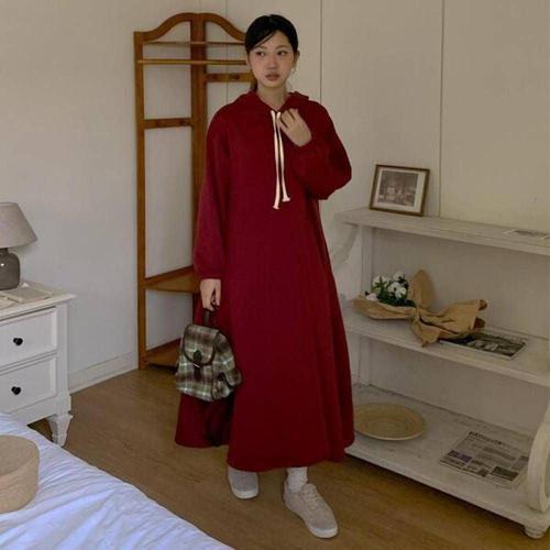 [옷자락]여자 겨울등원룩 홈웨어 무지 빅사이즈 기모 롱원피스