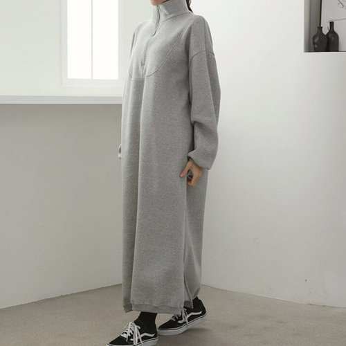 [브리치] / NO675 심플 무지 반폴라 긴팔 니트 원피스