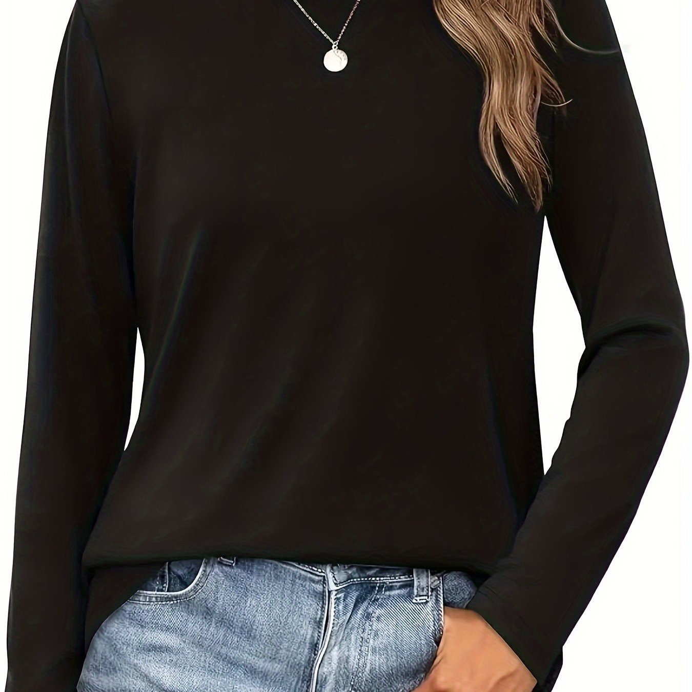 TEMU 플러스 사이즈, 플러스 사이즈 우아한 라운드넥 긴팔 티셔츠 - 플러스 사이즈 친화적인 캐주얼 블라우스, 단색 봄/가을 상의, 세탁기 사용 가능한 편안한 캐주얼 의상 & 특별한 날을 위한 셔츠 (미디엄 스트레치 원단)