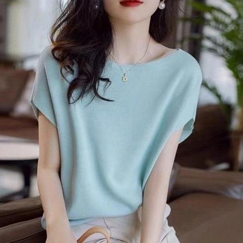 [엄지척]여성 쿨링 슬림 핏 여름 반팔 니트 티 라운드 셔츠_19678077_667501