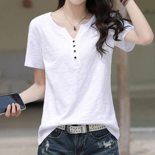 TBZ 슬리밍 여름 브이넥 반팔 여성 쿨 티셔츠 WFMGQIG
