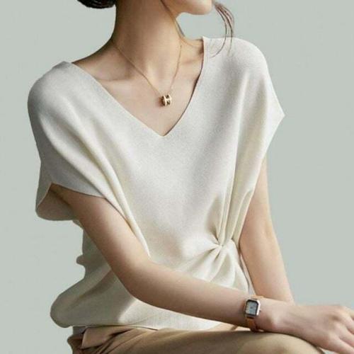 [셀럽하우스]여름 DVLC2406 여성 캐주얼 브이넥 쿨 필수템 반팔 니트 티 셔