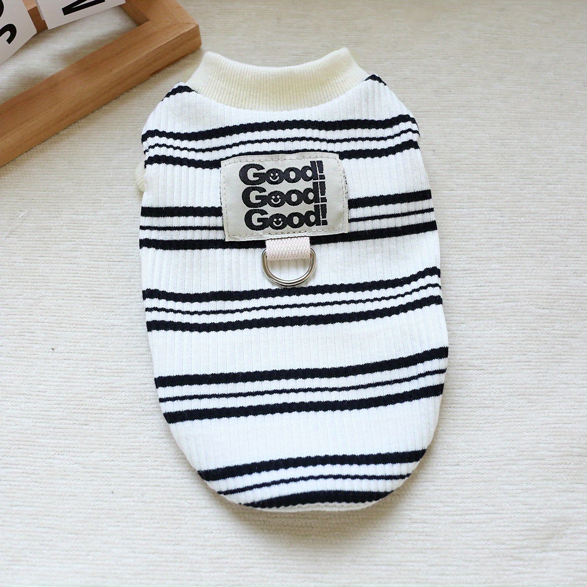 TEMU 강아지와 고양이용 줄무늬 소매 없는 조끼 - 가벼우며, 리드 액세서리가 있는 풀오버 스타일 - 털 빠짐을 방지하며, 비치온, 포메라니안, 테디와 같은 소형 품종에 적합 - 봄/여름 애완동물 의류