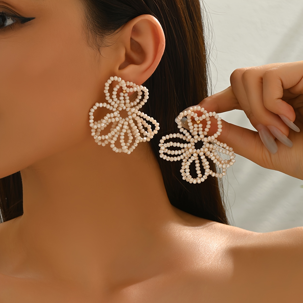 TEMU 1쌍 패션 휴가 스타일 수제 비즈 꽃 귀걸이, 여름 레트로 우아한 불규칙 플라워 이어링, 여성용 일상 파티 여행 댄스 페스티벌 모든 행사에 적합, 엄마 친구 선물, 발렌타인데이 어머니날 여성의 날 선물