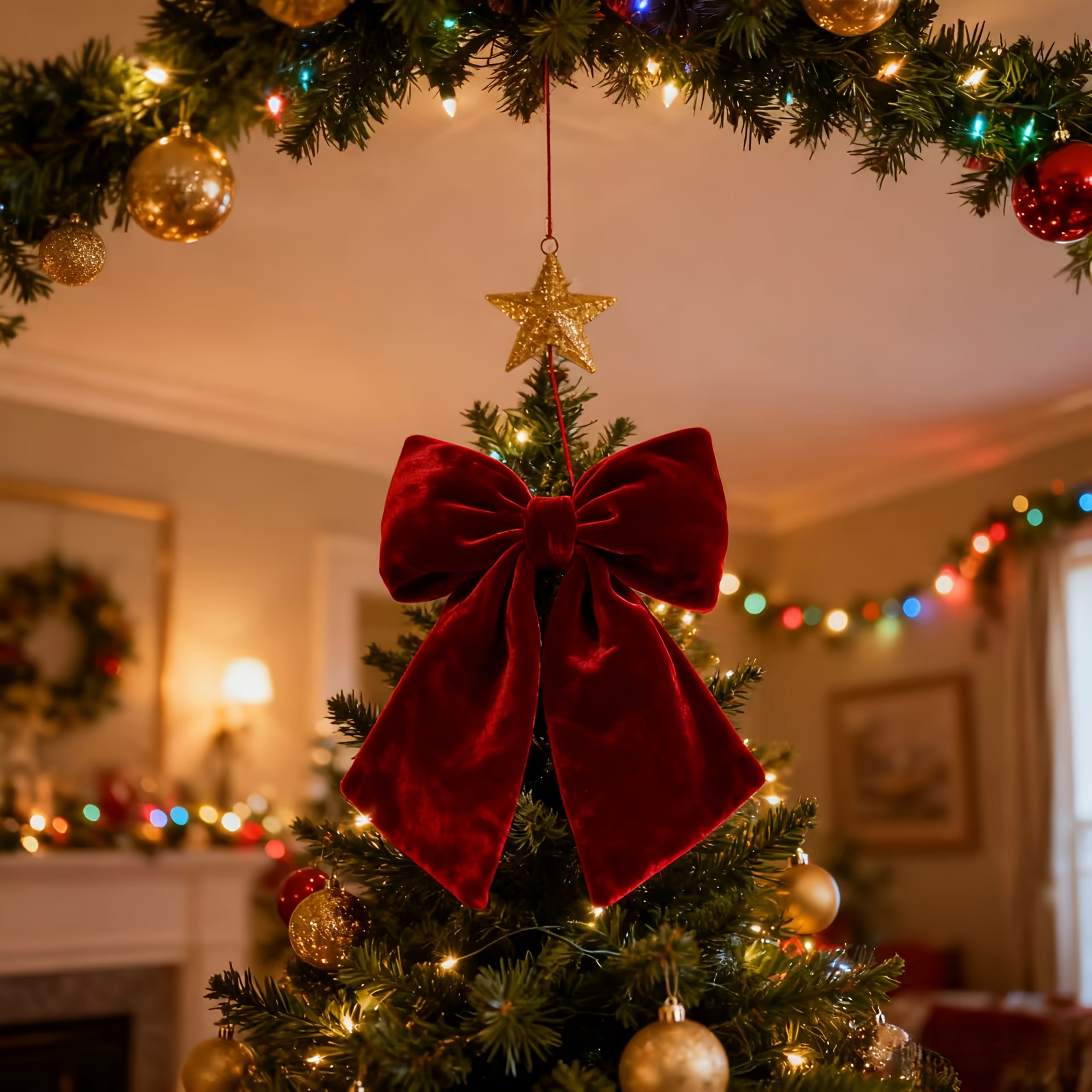 TEMU 발렌타인데이 레드 벨벳 입체 대형 리본 크리스마스 트리 장식품 걸이 장식, 발렌타인데이, 결혼식, 크리스마스, 새해, 하누카에 적합, 크리스마스, 결혼식, 호텔, 파티 연출을 위한 우아한 문 및 천장 걸이 장식