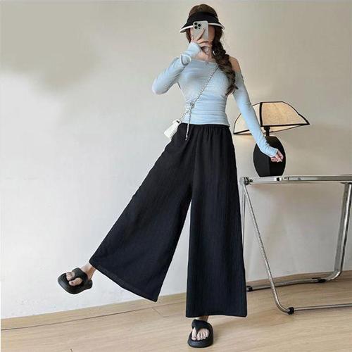 [셀럽하우스]썸머 UQIA2770 쿨 와이드 팬츠 블랙 여자 치마바지