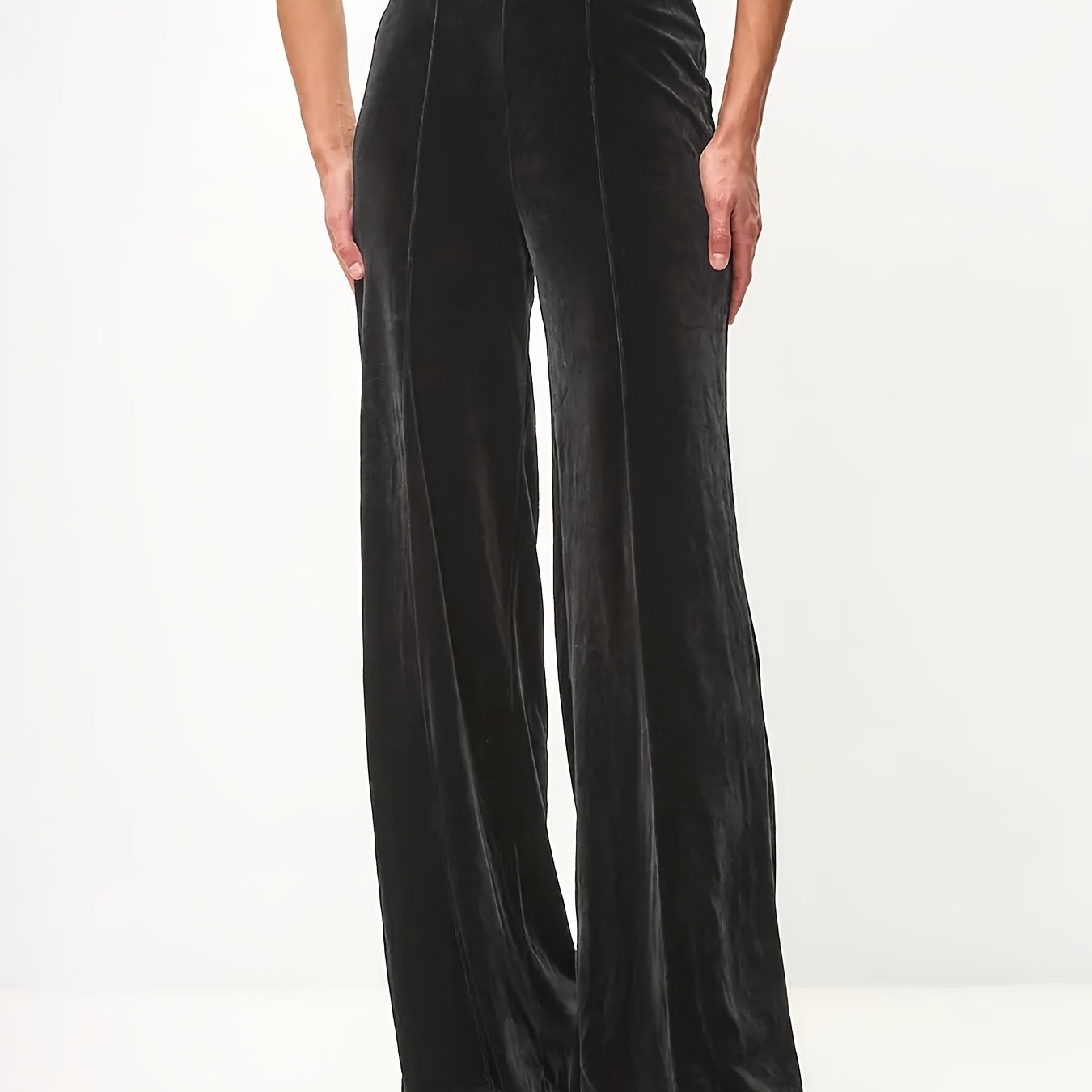 TEMU 여성용 하이웨이스트 우아한 벨벳 와이드 레그 팬츠 - 부드러운 스트레치 원단, 캐주얼하고 편안함, 올 시즌 착용, 단색, 루즈핏, 캐주얼 복장에 적합, 편안한 의류 | 릴렉스핏 팬츠 | 부드러운 질감의 팬츠