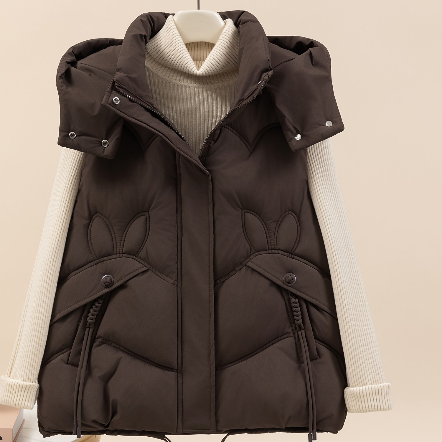 TEMU 새로운 탈부착 가능 후드 겨울 조끼, 두꺼운 만화 토끼 디자인, 루즈핏, 한국 스타일