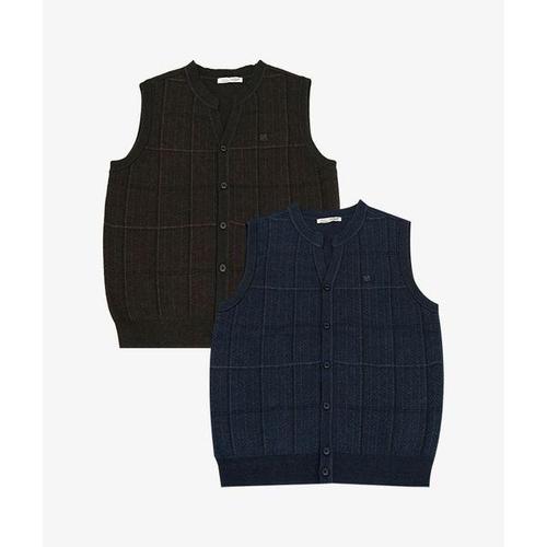 [크로커다일]헤링본 체크 자카드 오픈형 니트 베스트 CDAABKV3301