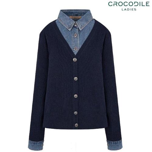 [크로커다일레이디](CLEWSW305) 데님 배색 풀오버 가디건_GN