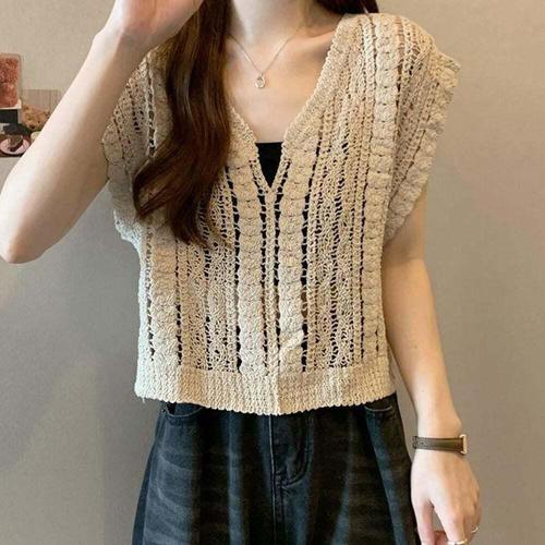 [셀럽하우스]여성 MERZ1420 여름 크로셰 브이넥 뜨개 조끼 베스트