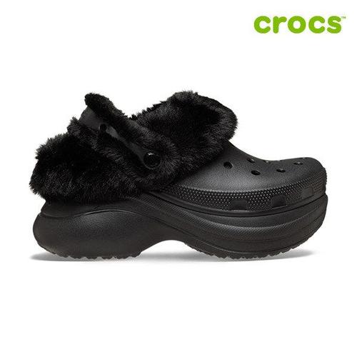 [크록스] 샌들 베이 라인드 클로그 여성 키높이 겨울 방한 털슬리퍼 211753-001