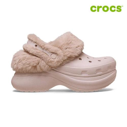 [크록스] 베이 라인드 클로그 여성 키높이 겨울 방한 털슬리퍼 211753-160