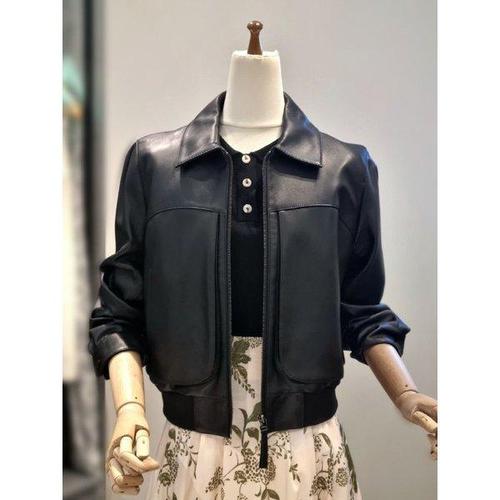 [기타브랜드]크롭 레더 자켓 캐주얼 가죽 여성 아우터