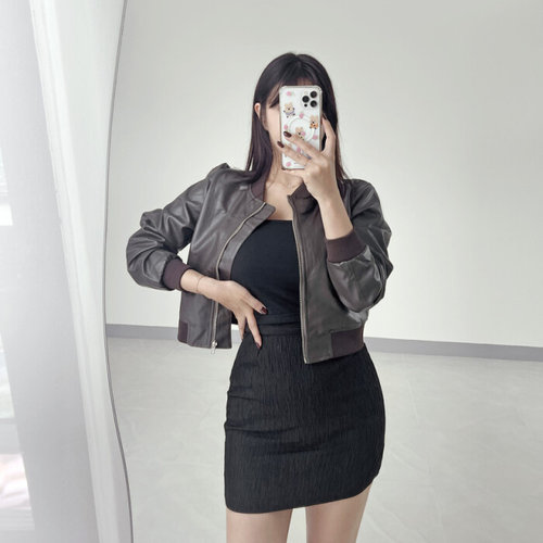 [보니스팍스]레더 카라 집업 밴딩 크롭 자켓 (XP3JK025L0)