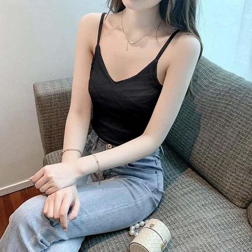 여성 얇은 끈 크롭 나시 캡내장