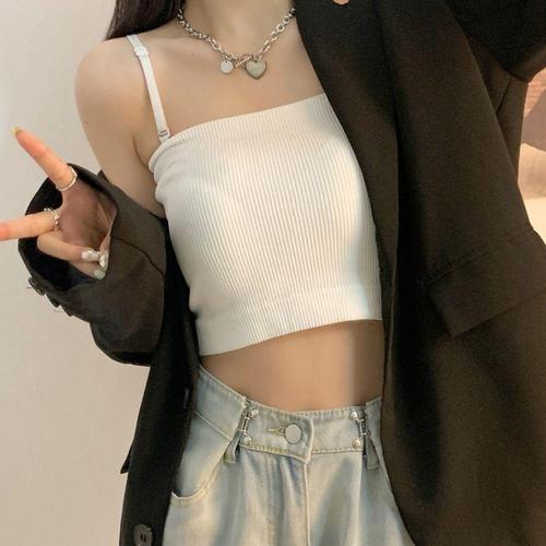 [셀러허브_여성트랜드패션]여자 이너 민소매 두줄 여름 크롭 브라 캡내장 끈나시