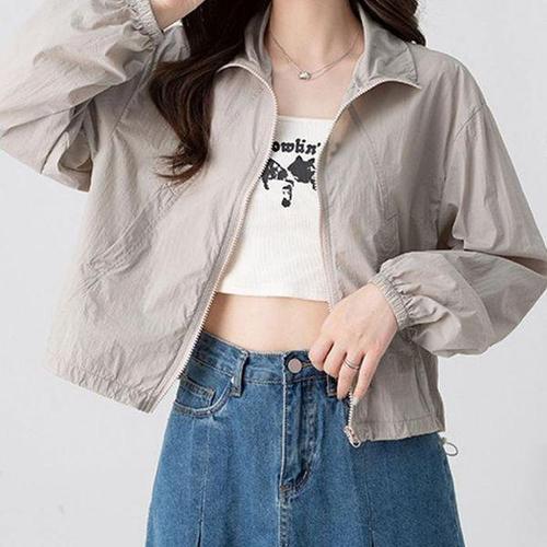 여성 얇은바람막이 여름 썸머 바스락 홑겹 윈드 크롭 점퍼 숏 카라 바람막이