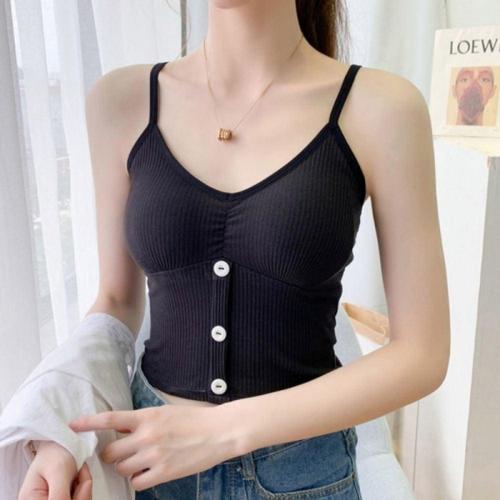 크롭탑나시 여자나시 단추 요가복 스포츠나시 포 WFKNY6Z