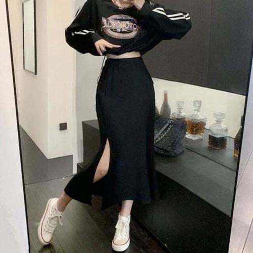 cammello 옆구리 트임 포인트 긴팔 크롭티 크롭 긴팔티