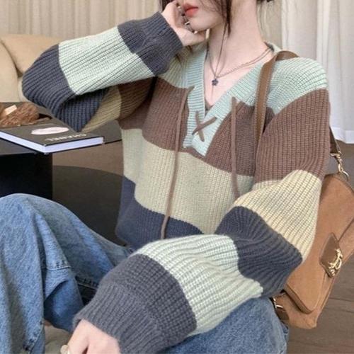 여성용 토시 캐주얼 니트 가디건 탑 긴 소매 골지 패치워크 슬림 엘레강트 루즈 크롭 탑 여성 니트웨어 가디건