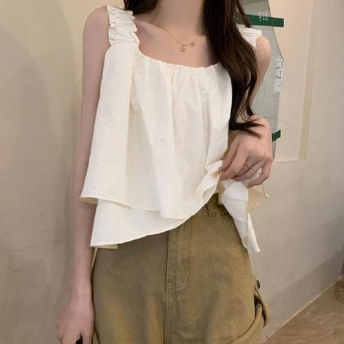 [엄지척]A라인 크롭 여성 시원한 프릴 민소매 나시 블라우스_19650523_667501