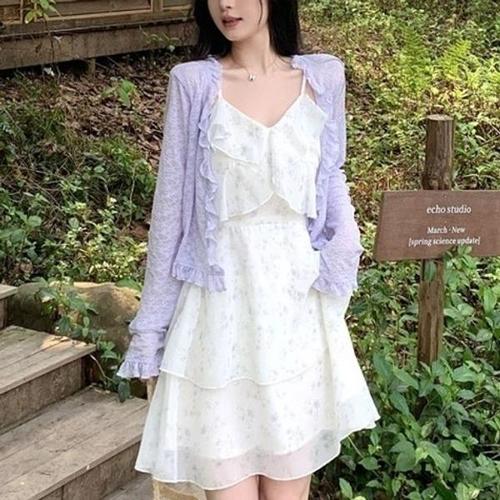 [엄지척]프릴 시스루 크롭 가디건 원피스 나시 코디 가디건_19791997_667501