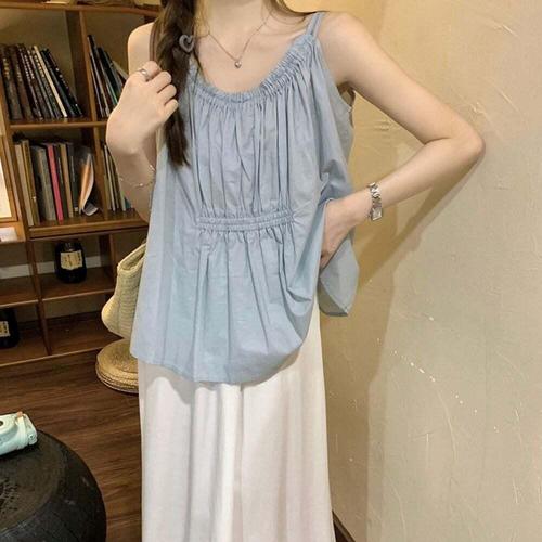 [모노무드]모노무드 셔링 크롭기장 바캉스 루즈핏 끈나시 블라우스