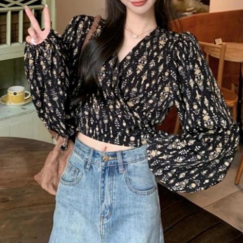 |CDH4297|여성용 일상 캐주얼 크롭 탑 블라우스