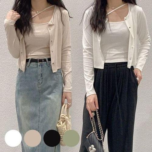 [셀러허브_여성트랜드패션]ONM 여성 카디건 크롭 나시 가디건 투피스 세트