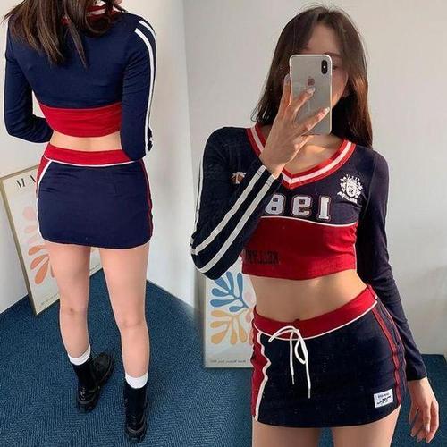 [셀러허브_여성트랜드패션]ONM 1983투피스 긴팔 미니스커트 크롭 배색