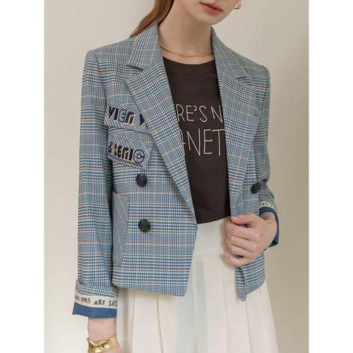 [르니앤맥코이]모던 레터링 자수 체크 크롭 자켓 ML05JK202HJY
