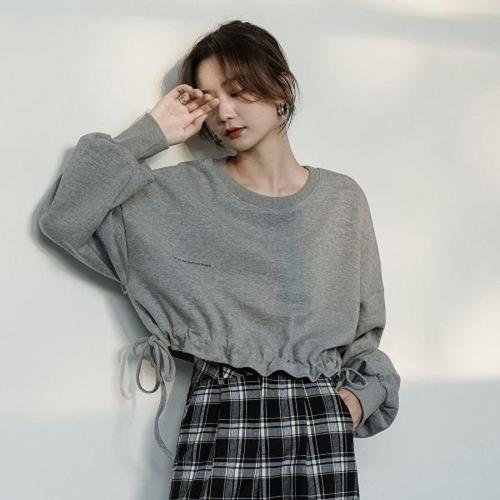 베이직 크롭 심플한 맨투맨 루즈핏 숏 스트링 WFLQA67